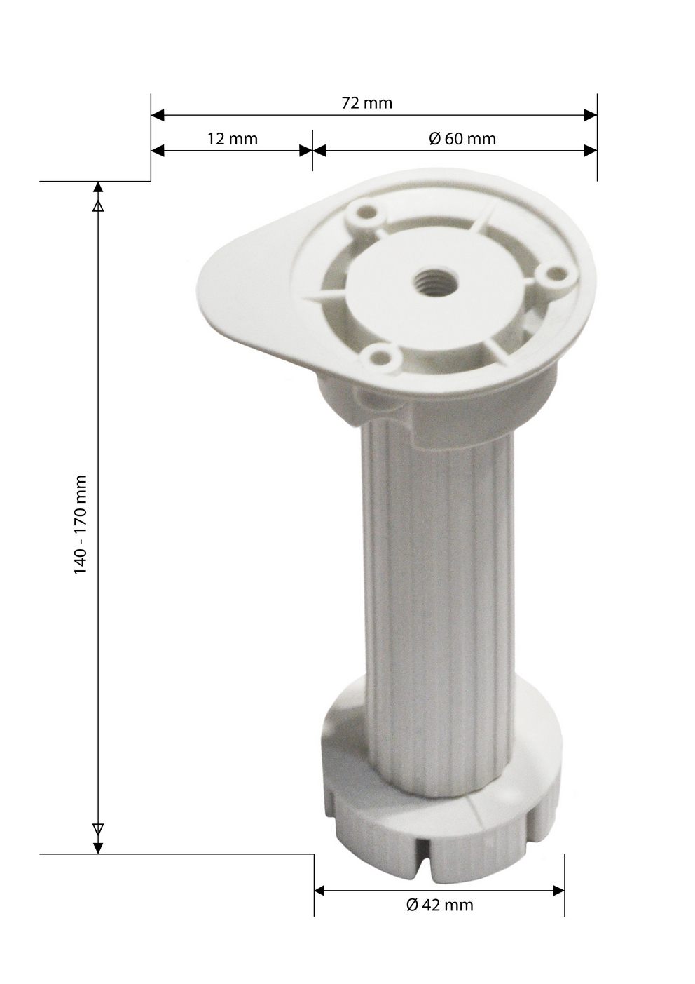 Опора кухонная 150 мм, Белая (капля)